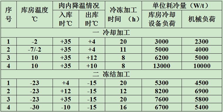 凍結(jié)物冷藏間每噸食品需冷卻面積