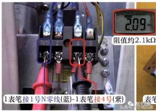 表筆直接測量2個(gè)接線端子, 實(shí)測阻值和在室外機(jī)接線端子上測量相等。