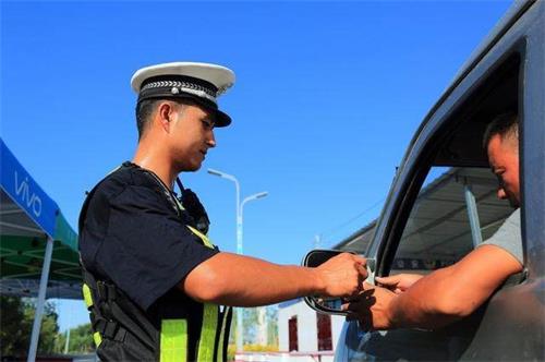 精河交警執(zhí)勤在路上,配合交警的工作,從自己做起,