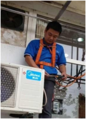 小李師傅所負(fù)責(zé)的區(qū)域主要是南京河西,而河西多數(shù)為高層小區(qū),導(dǎo)致空調(diào)器的檢修工作,常常需要在戶外進(jìn)行高空作業(yè)。高空作業(yè)相對來說是比較困難和危險的,烈日當(dāng)頭,小李師傅從來沒有過半句怨言?照{(diào)檢修好之后,感受著空調(diào)器吹出的涼風(fēng),面對微笑致謝的用戶,小李師傅心里有說不出的愉悅。