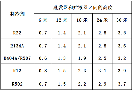為了確定它的實際壓力降,還要考慮液體管路上的壓降設(shè)為0.1bar,過濾器、視鏡、手動閥、管路彎頭等的壓降設(shè)為0.2bar,各在直立液體管路的壓降設(shè)為0.7bar,(注:因為有高度差是6米,通過以下表可查),再有液體分配器壓降設(shè)為0.5bar,分布器中壓降也設(shè)為0.5bar。
