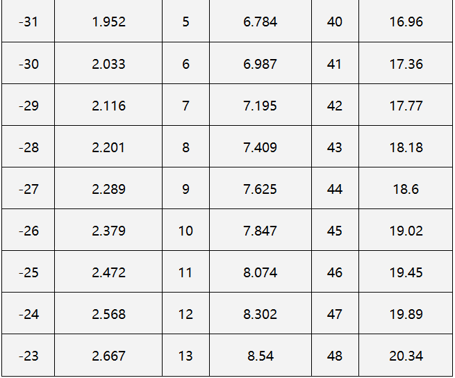 工質(zhì)R502溫度與壓力(t:p)對照表